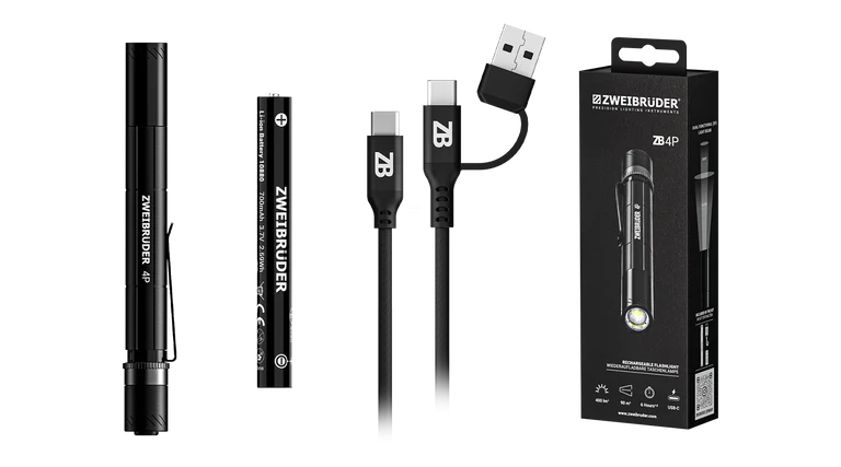 • Zakres dostawyLatarka ZB4P, bateria 10880, kabel ładujący USB-C, klips