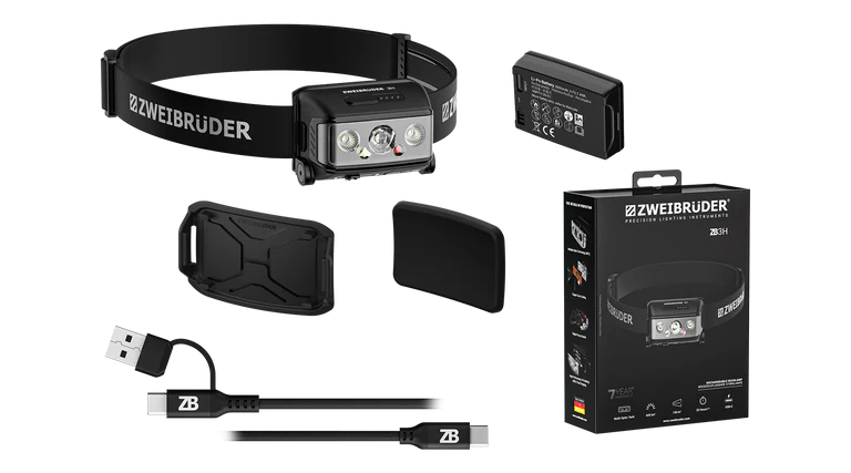 - Zakres dostawyLatarka czołowa ZB3H, akumulator litowo-polimerowy, kabel ładujący USB-C, uchwyt na kask, podkładka zapewniająca wygodę